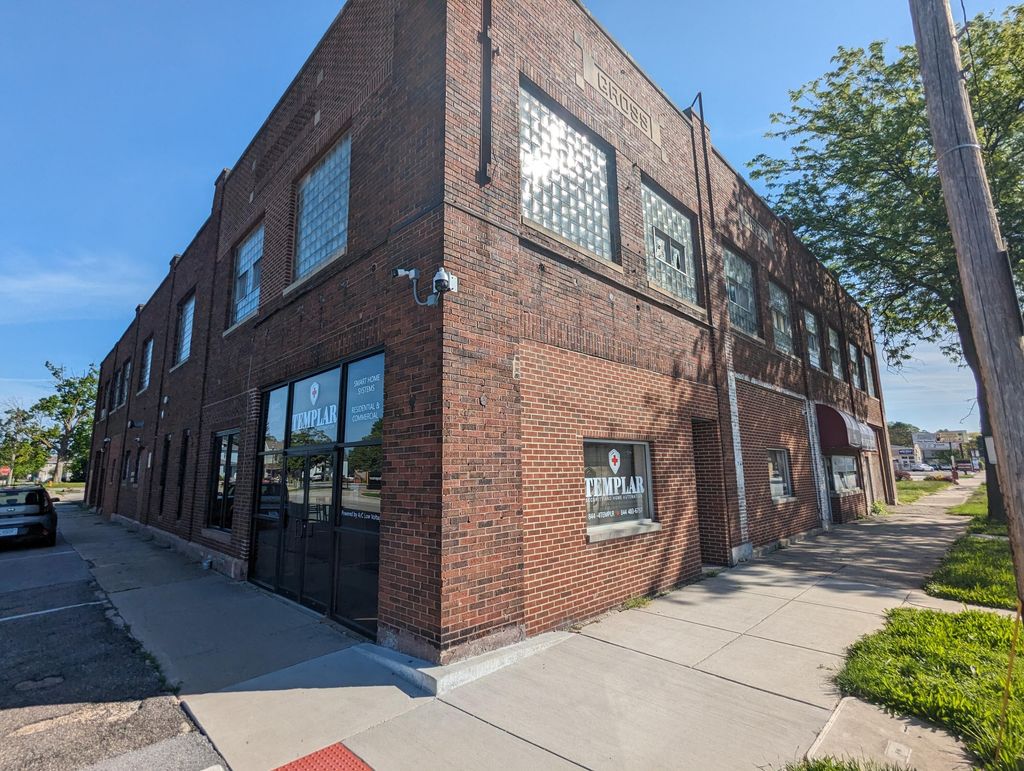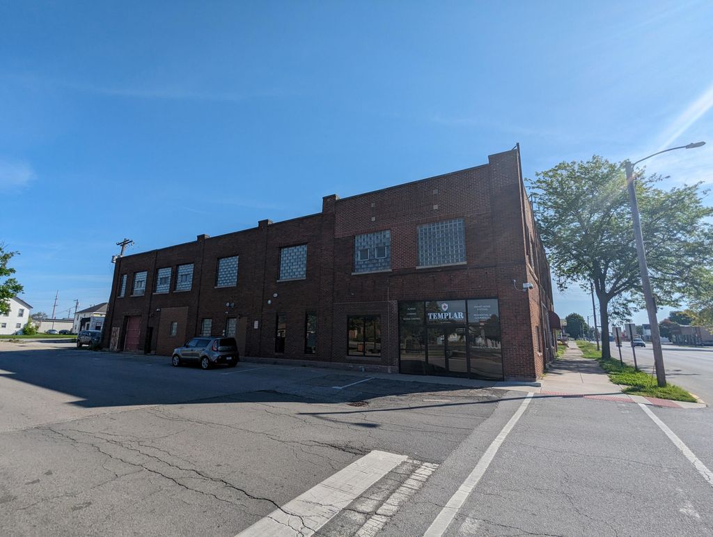 Endless possibilities in this prime space in downtown Laporte. On the corner of Lincolnway & Detroit St. 8000 square ft total space included, this is not a listing for the entire building (templar security and hawkins print shop are NOT included in the price). Upper level features a 4945 sq ft open loft space with 1.5 bathrooms. Currently rented as an artist studio (month to month lease). Lower level hosts a 2365 sq ft office space with separate entrance (freshly painted with new flooring) that can be used for many purposes (Zoned CBD1). Rear half of the parking lot in the back is included. Garage space includes conveyor belt the goes up from the garage to the Loft space. Must see to appreciate this incredibly well built building.