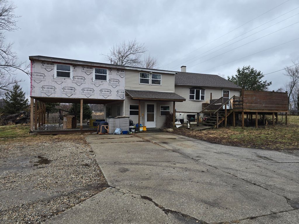 Bright opportunity on almost 10 acres in Hebron, IN -- a quad-level fixer-upper with 6 bedrooms (three finished, three unfinished) awaiting your vision. Spacious main living areas and multiple levels create flexible space for a home office, or hobby rooms. The unfinished bedrooms offer a cost-effective way to add living area and increase value. Property sits on nearly 10 acres, surrounded by farm fields, room for gardens, outbuildings, or outdoor recreation. Sold as-is; ideal for investors or buyers comfortable with renovation and work. Convenient rural setting. Seller pays 486 year for AE flood zone insurance. Information believed accurate, not guaranteed.