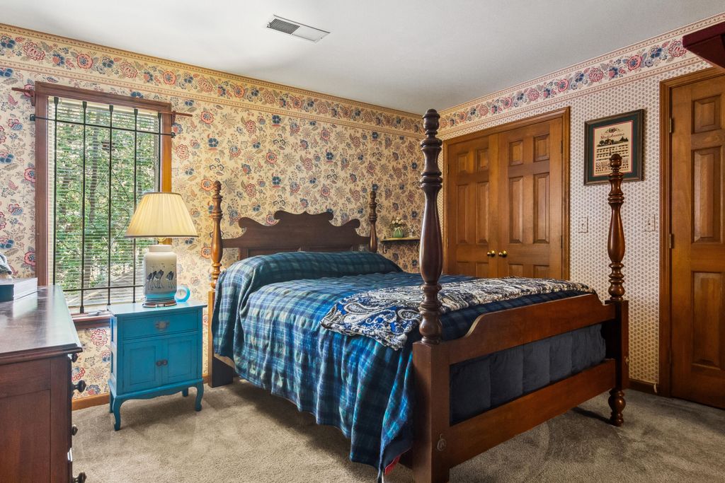 ENTERIOR OF HOME TO BE NEUTRALIZED AND ALL PAINTED. Picturesque 2 story on private Wooded Lot. This 4 bed 4 bath boasts 4,058 sq. ft. Music Studio 27x19, large enough for your grand piano. lmpressive vaulted/cathedral/beamed ceiling, built in storage and desk, separate private entrance built in 1998 added to Primary Bdr., Bth, Laundry, closet. Suite could be used for additional living on main level. L-shaped tiled Foyer, entry closet, staircase to upstairs and basement. Living Room has floor to ceiling stone fireplace for cozy winter nights surrounded by whole wall of built in bookcases. Dining Room: Entertain in uncrowded comfort and style. Access to kitchen and Living Room. Classic eat in kitchen, blt in appliances, ample cabinets, large walk-in pantry with floor to ceiling white cabinets and desk. Access to Rec Rm with plenty of room for comfy furniture. Wall of custom blt storage with T.V. space, cathedral ceiling, palladium window and sliding door to large private wrap around deck to entertain on. Enjoy your first cup of coffee in the morning. Upstairs 2 bdrm with a jack and jill bathroom. 3rd bdr has private bth. Blt in carport off garage could store 2 more cars. Enjoy Lake life on 230 acre private lake, boating, fishing, playgrounds, walking trails, nature preserves, dog walk, clubhouse, beach, pool, tennis, pickle ball courts. Minutes to downtown Valparaiso and commuting to Chicago. Low taxes and top rated schools. Be prepared to fall in LOVE with this HOME and Shorewood Forest. This is truly the end of YOUR RAINBOW. A HOME to make YOUR MEMORIES.