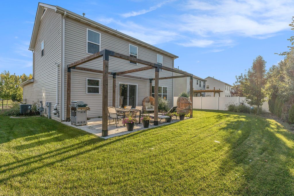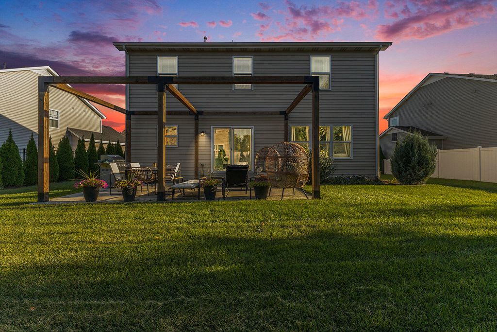 Welcome to this beautiful 2-story home in Chesterton, IN! Built in 2017, this 4 bedroom, 3 bathroom residence offers modern living with an inviting open-concept main floor--perfect for everyday living and entertaining. The spacious kitchen is a highlight, featuring granite countertops, kitchen island, stainless steel appliances that stay, and a seamless flow into the dining and living areas. A convenient main floor laundry room and a 2-car attached garage add to the home's functionality. Upstairs, you'll find generously sized bedrooms, including a primary suite with its own bathroom and walk-in closet. The unfinished basement provides plenty of storage or future living space to finish to your taste. Head outside to a fenced-in backyard designed for relaxation, featuring a patio with a charming pergola--ideal for summer evenings and gatherings. Conveniently located near expressways, this home offers easy access to shopping, dining, and commuting. Move-in ready and well cared for, this Chesterton gem is waiting for its next owner!