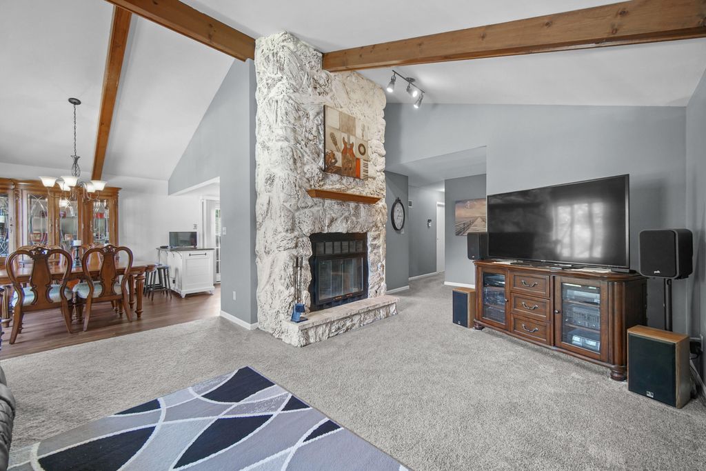 MOVE-IN READY, 2500Sqft, 5Bdrm/2Bth, Bi-Level Home CONVENIENTLY LOCATED just West of Rt41, South of Rt30! Nicely Landscaped Exterior w/ 2.5 Car Attached Garage WELCOMES YOU into Spacious Foyer w/ Tile Flooring, which leads up to VAULTED LIVING ROOM w/ Stone FIREPLACE and Wood Beam Ceilings. Living Rm opens to Dining Rm w/ NEW Laminate Flooring, which flows into OPEN CONCEPT Kitchen featuring Freshly Painted Cabinetry, C-Fan, Built-in Pantry, ALL APPLIANCES INCLUDED, & Patio Doors to Deck. Upper-Level offers 3 Bedrooms, all w/ Ceiling Fans and WHITE TRIM/DOORS, along w/ Full Bath featuring Elongated Vanity, UPDATED FLOORING, & Easy-clean Tub Surround. Lower-Level offers Nice Size Recreation Rm, TWO Additional Bedrooms, 3/4th Bath, & Laundry Room w/ Sink that comes equipped with Washer & Dryer INCLUDED. LARGE Backyard is PERFECT for SUMMER ENTERTAINING w/ Nice-Size Patio. Located within Minutes to State Line, Restaurants, Shopping, & ALL CONVENIENCES w/ LOW INDIANA TAXES!
