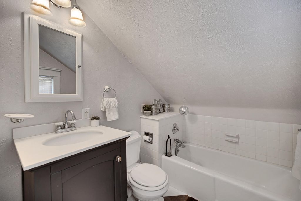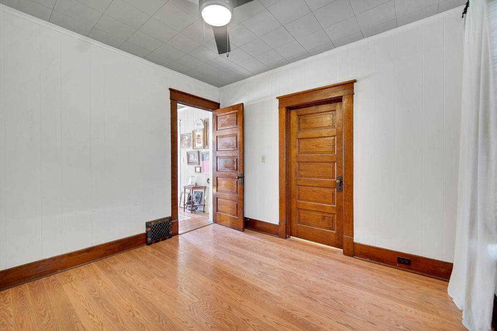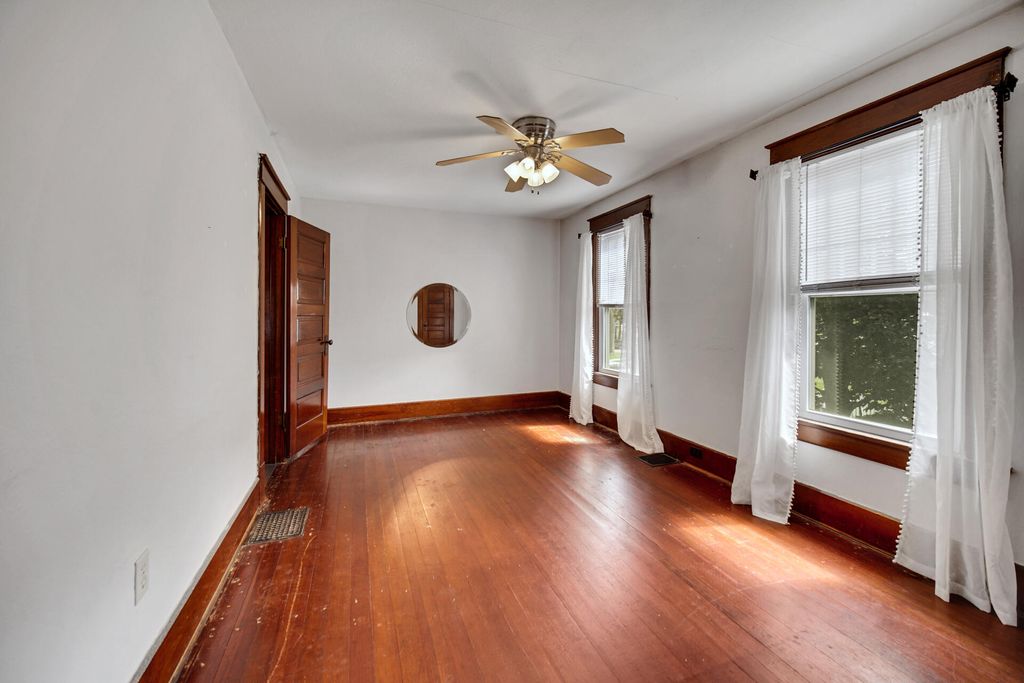 Warm, inviting and well maintained this 4-5 bedroom two story home has plenty of character with gorgeous hardwood through out, The formal foyer greets you with solid wooden staircase, and french doors leading into the spacious living room, large formal dining room with plenty of natural light, main floor bedroom or study with an updated 3/4 bathroom, and at the back of the home is the kitchen offering stainless steel appliances and an abundance of cabinets and updated counter tops, there is also a pantry area. Upstairs there is a nice open landing and 3 bedrooms, a full bathroom, and a 4th room that can be flexible in usage either a den or a nursery, or play room. Full basement has a finished family room, and a nice sized storage room, also a utility room with laundry, brand new hot water heater, and updated roof, plumbing and electric service. Outside there is a privacy fenced in yard with a nice sized shed perfect for holding lawnmower and tools, there is also a curb cut in the front for a future driveway.
