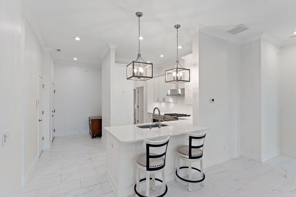 Discover the epitome of modern living in this immaculate 2-bedroom, 2-bath condo situated on the coveted second floor of St. Paul's Square, complete with convenient elevator access in the vibrant downtown district! As you enter through the spacious front foyer on Campbell Street, you'll appreciate the mailbox access and the secure entry that welcomes you into the common area, featuring an elevator and a stairwell for your convenience. Owners enjoy the luxury of rear parking off Chestnut Street, with seamless access to the common area from an oversized one-car garage complete with an overhead storage rack. Step into unit 201 via the elevator and prepare to be captivated! The entrance invites you into a stunning living room/dining room combo accentuated by soaring 10-foot ceilings, elegant marble flooring, and exquisite crown molding. Enjoy breathtaking westward views from your private balcony, perfect for soaking in those spectacular sunsets. The wood plantation shutters add a touch of sophistication while offering both tilt and full-swing options for maximum light control.The kitchen is a dream come true, showcasing white cabinetry, a full suite of stainless steel appliances, luxurious quartz countertops, a convenient pantry, and a built-in microwave. A dedicated laundry room featuring additional white cabinetry is tucked away for your ease. Retreat to the primary bedroom, a true sanctuary that boasts an ensuite bathroom equipped with double vanities, a glass shower, a spacious walk-in closet, and a private linen closet. The thoughtfully designed split layout places the second bedroom on the opposite side of the unit, accompanied by a stylish full guest bath with a single vanity and semi-linen closet, ensuring comfort and privacy for all. This gently lived-in gem is move-in ready and waiting for you! Enjoy the privilege of being within walking distance to Central Park Plaza and an array of delightful restaurants and shops.