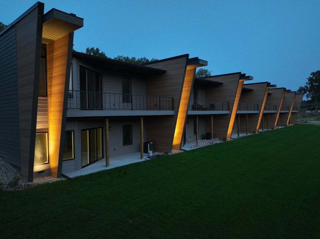 GOLF COURSE LUXURY meets modern architectural style living with angular roofs, sharp lines and natural materials creating a sleek, contemporary aesthetic that blends with the surrounding green landscape of the Legacy Hills Golf Course- rated as a top 20 public course in the state of Indiana. These 2 or 3 bed, 2 1/2 bath townhomes are a real showstopper. Watch the seasons change and golfers from your great room featuring large floor-to-ceiling windows which allow ample natural light and create a bright and airy atmosphere. The cozy open-concept design space features a modern, professionally designed kitchen with quartz tops, stainless-steel appliances, and a sleek island with bar seating. The contemporary finishes add a stylish ambiance. The home is complete with dream finishes such as a posh master suite with double vanity, tile shower, dressing room with custom closet system, spacious laundry room/ butler's pantry/ mud room area right off of the roomy 2.5 car garage (with space for golf cart), and a lower level that walks right out to the golf course with a 2nd bedroom, den & bright open family room perfect for game day entertaining. The proximity to shopping, dining, walking trails, casinos, New Buffalo, Michigan City, South Bend, I-94 and I-80 make this a magical location. Enjoy the association swimming pool and clubhouse as you relax in the country club setting of the Legacy Woods Townhomes. Some photos and tours are of model units. Phase 3 is now under construction with a limited number of units still available. All of this and it is located in LaPorte, IN who just won the number 2 spot for USA Today's Best Small Town in the Midwest contest as well as a top 10 finish in Bottom Line Magazine's list of the most affordable places to live in the entire US!