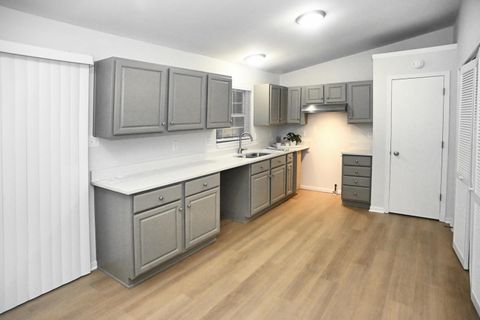 Welcome home to this beautifully updated 3-bedroom, 2-bath ranch featuring modern upgrades throughout. Enjoy a spacious open layout with brand-new LVP flooring, freshly painted walls, and stylish new light fixtures. The kitchen shines with freshly painted cabinets, stunning new quartz countertops, and new blinds throughout for a clean, contemporary look. Both bathrooms have been tastefully remodeled, and the home includes a brand-new air conditioner, water heater, and new roof for worry-free living. Outside, you'll find a 2.5-car garage, a fenced yard perfect for pets or entertaining, and a serene wooded lot behind the home that offers exceptional privacy. Conveniently located just minutes from I-94 and only 40 minutes from Chicago -- this move-in ready home blends comfort, style, and convenience! Lake Station High School is just down the street.