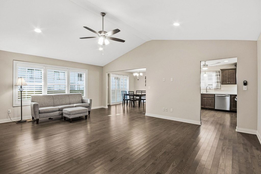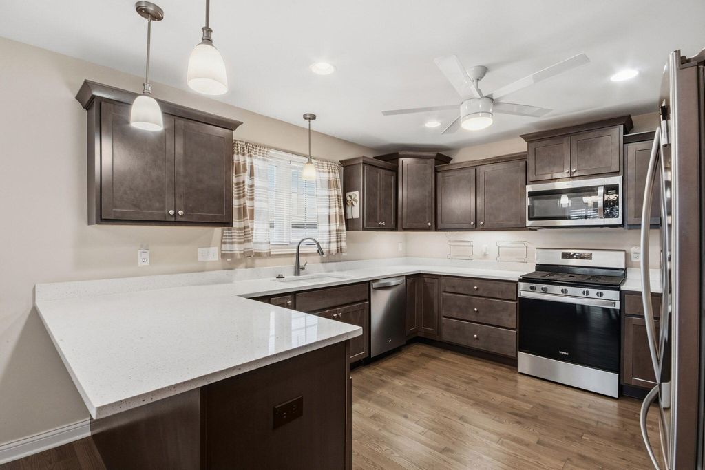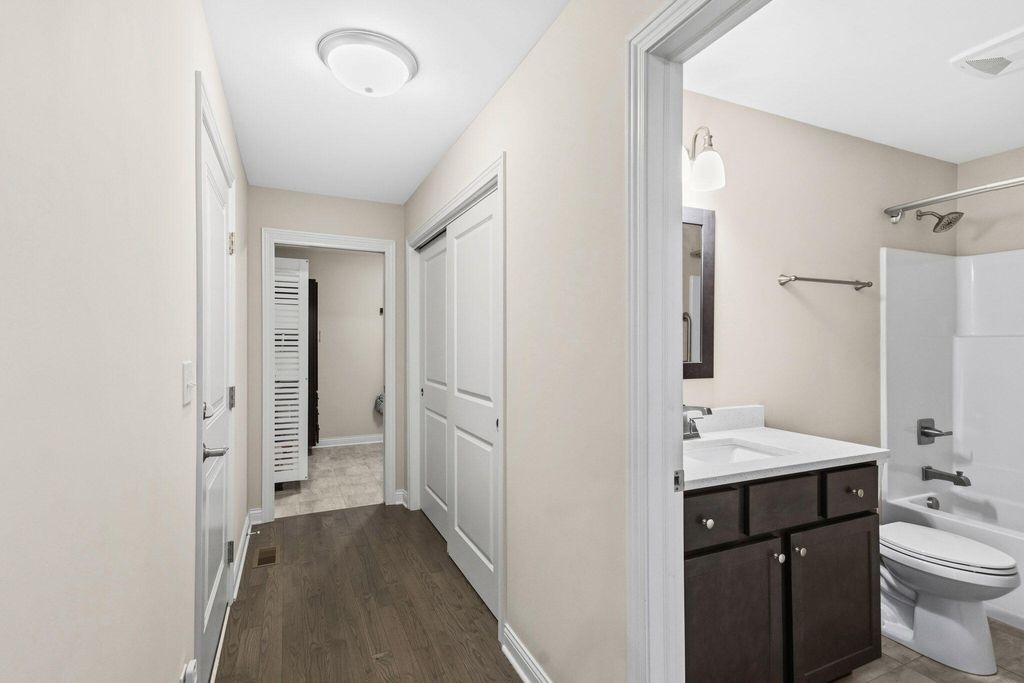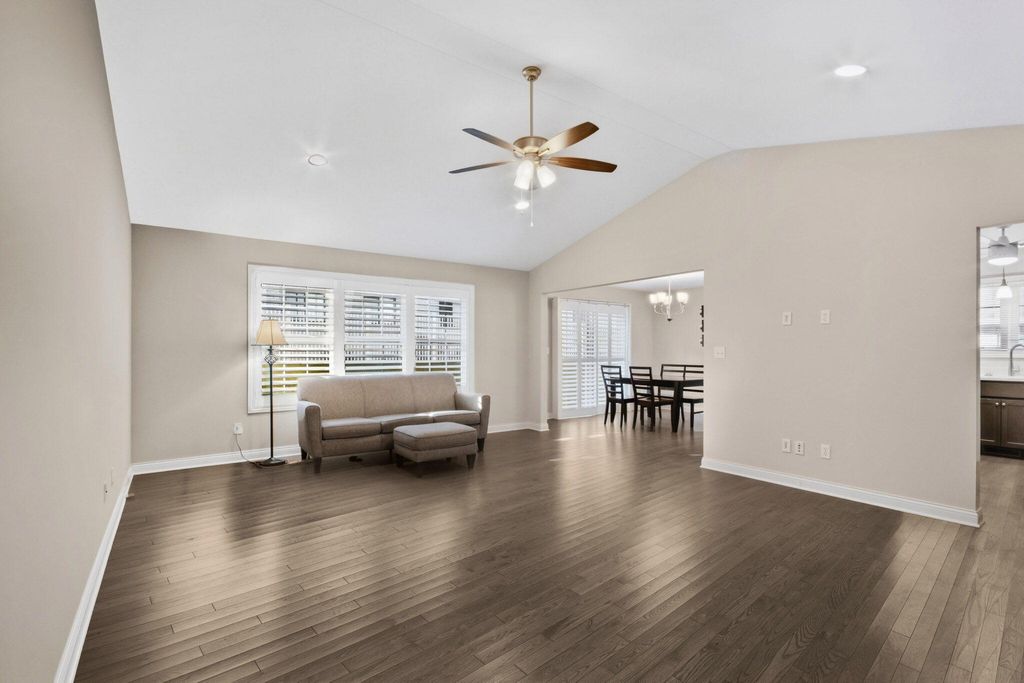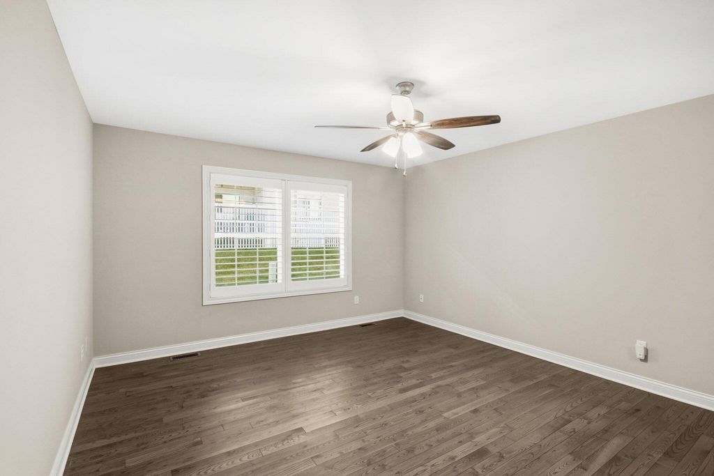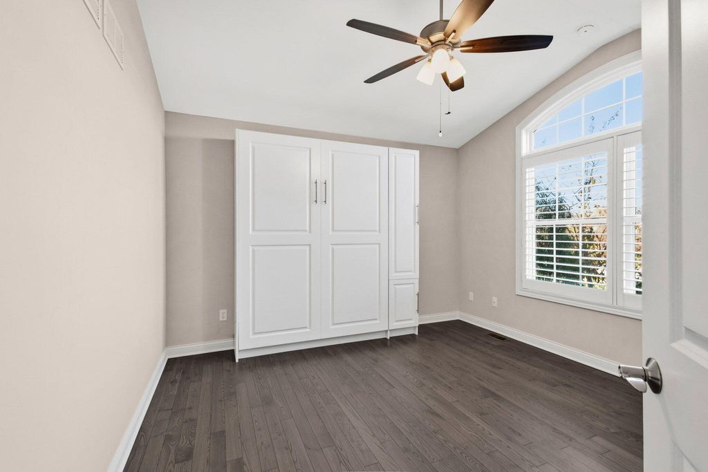 Better than new! This 4-year-old, 1,800 sq. ft. paired villa in a desirable location is loaded with upgrades and premium finishes throughout. The stunning kitchen features custom cabinetry with crown molding, a pantry, granite countertops, and stainless steel appliances--perfect for cooking and entertaining. Patio doors off the kitchen lead to a private outdoor space, ideal for relaxing or entertaining. The oversized living room is filled with natural daylight and recessed lighting, creating a bright and welcoming atmosphere. The spacious primary suite offers a large walk-in closet with custom organizers, a ceramic-tiled shower with glass door, and a granite double-sink vanity. The open-concept split floor plan includes two additional bedrooms with ceiling fans and generous closets, with the third bedroom featuring a convenient Murphy bed for extra flexibility. The full unfinished basement is roughed-in for a 3/4 bath, and the sellers are leaving a new vanity and toilet, making finishing the bathroom simple for the new owner. Additional highlights include a laundry room with utility sink, cabinets, and washer/dryer included, gorgeous hardwood floors, custom shutter blinds throughout, professional landscaping, and maintenance-free living. This home offers modern comfort, exceptional craftsmanship, and thoughtful upgrades throughout--truly move-in ready!