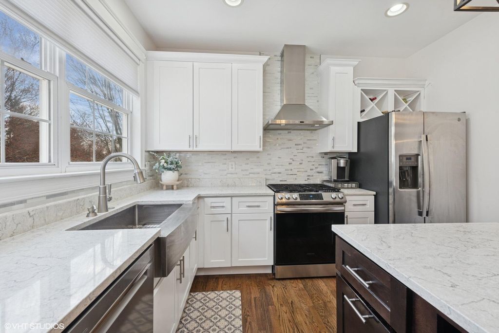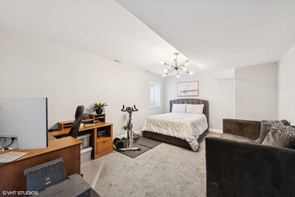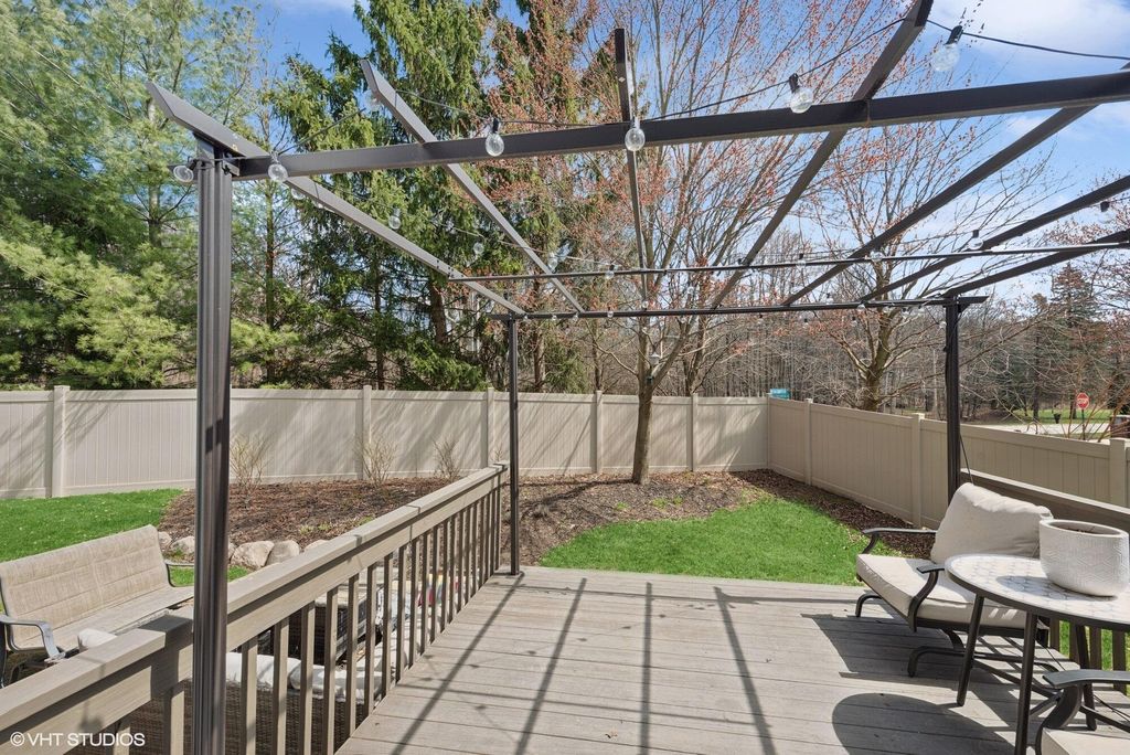 Tucked into Maple Creek on Valpo's popular north side, this is the kind of home that just feels easy to live in. You're close to schools, parks, shopping, restaurants and the 49 bypass, but once you pull into the neighborhood it feels quiet, friendly and settled. The kitchen is truly the heart of the home. Completely renovated with quartz countertops, a glass tile backsplash, stainless appliances and a large island, it's built for real life: morning coffee, homework at the counter, and gatherings that naturally spill into the great room around the gas fireplace. Sliding doors lead to the deck and patio overlooking a big backyard with a 6-ft privacy fence, giving you space to relax, play, or entertain without feeling on top of your neighbors. A dining room, office and main floor powder room round out a layout that just makes sense. Upstairs, the primary suite feels like a retreat at the end of the day with a spa-style bath and walk-in closet, while three additional bedrooms and a full bath give everyone their own space. The upstairs laundry makes daily routines simpler than you'd expect. The finished daylight basement adds another comfortable living level with a large family room and a spacious fifth bedroom currently used as both a guest room and work-from-home setup, plus a generous storage area to keep everything organized and out of sight. Big-ticket updates are already done including roof, furnace and A/C, along with a remodeled deck and a 3.5-car garage for all the extras. This is one of those homes where the layout, updates and location all come together, comfortable for everyday living but ready for gatherings when you want them. Come see why it feels like home the moment you walk in.
