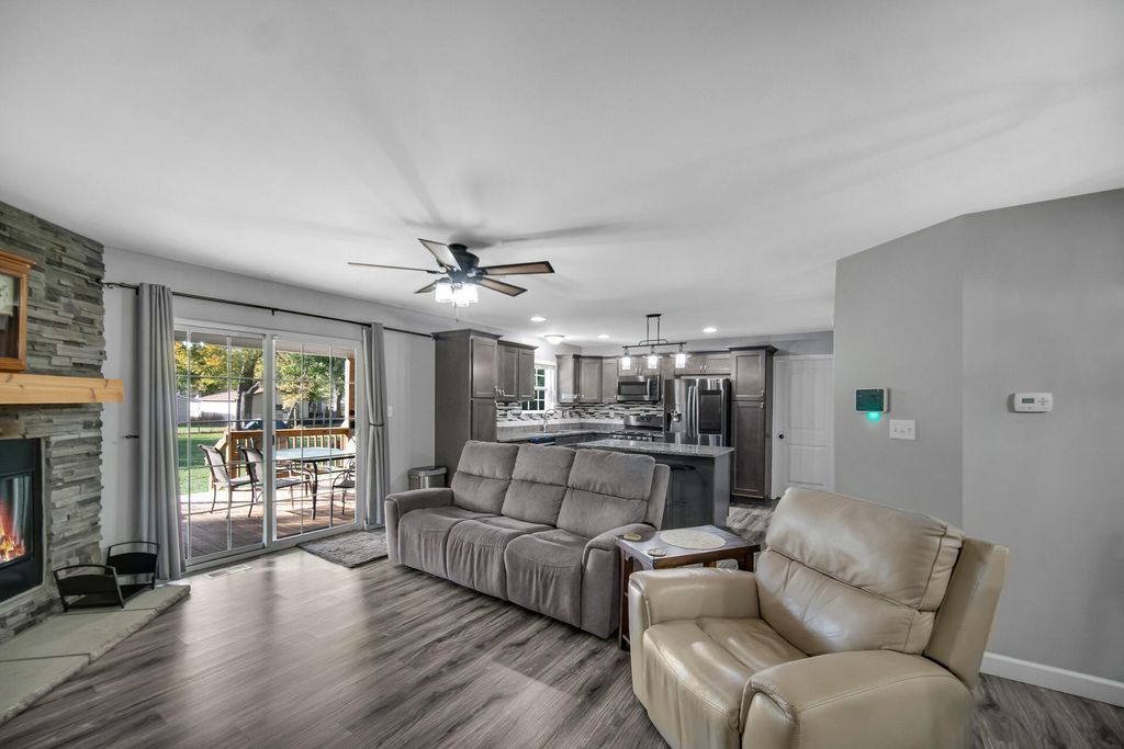 NEWER-BUILT RANCH w/ ATTACHED 3-CAR GARAGE offering TONS of STORAGE on a LRG LOT! OPEN CONCEPT KIT/LR showcases STONE FIREPLACE, GRANITE COUNTERS, CUSTOM TILE BACKSPLASH & NEWER APPL--Perfect for Everyday Living or Entertaining! MASTER SUITE features DUAL VANITIES & PRVT FULL BATH for Added Comfort. Enjoy Evenings on the LARGE COVERED BACK DECK overlooking the SPACIOUS Partially Fenced YARD. QUALITY FINISHES, MODERN DESIGN & EASY ONE-LEVEL LIVING make this home a WINNER! GREAT CURB APPEAL + PRIME LOCATION close to Parks, Schools, Shopping & quick access to 80/94 and the Toll Road--MOVE-IN READY & FULL of STYLE!