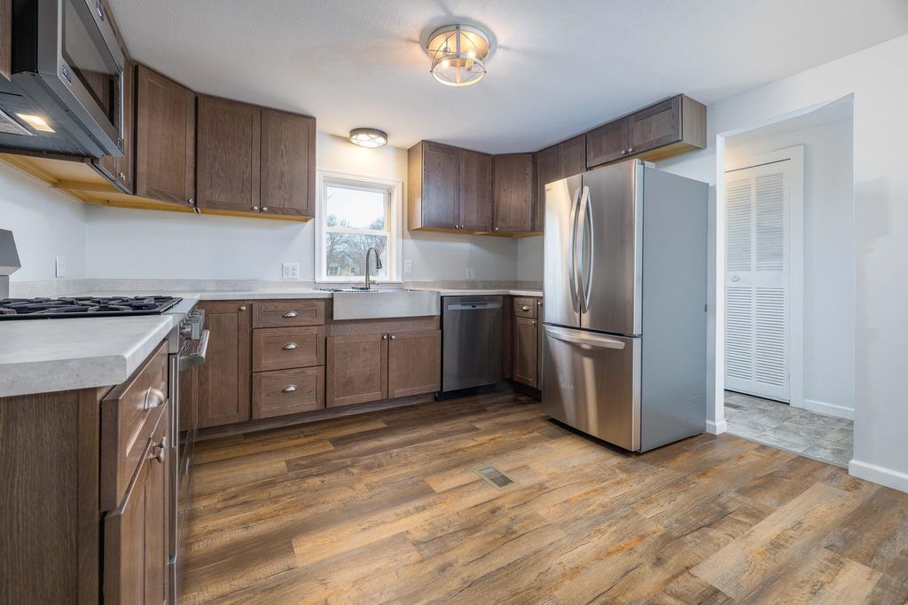 Fully renovated and move-in ready, this beautiful 3-bedroom, 2-bath home sits on a spacious 0.3-acre lot and offers a perfect modern layout and all the upgrades. Inside, you'll find all-new plumbing and electrical, luxury vinyl plank flooring, and a thoughtfully designed layout that provides both primary ensuite privacy and open floor plan functionality.The kitchen features sleek stainless steel appliances, ideal for cooking and entertaining. The primary bedroom includes a private ensuite, offering a quiet retreat at the end of the day. Both the front and back doors have been upgraded to high-quality fiberglass, adding style, durability, and energy efficiency.A durable metal roof adds long-term value and low maintenance, while the on-demand hot water heater ensures you'll never run out of hot water. The oversized detached two-car garage provides ample space for vehicles, storage, or a workshop.This home combines quality finishes with practical upgrades--ready for you to move in and enjoy.