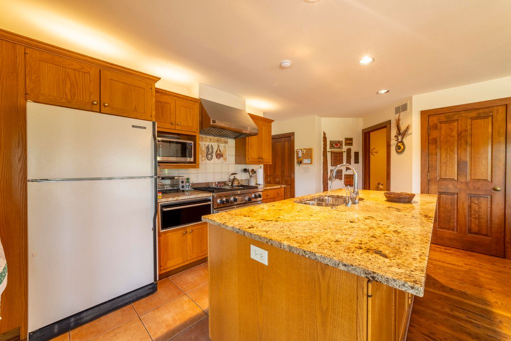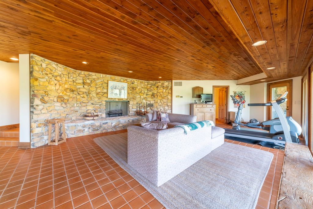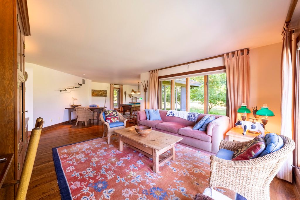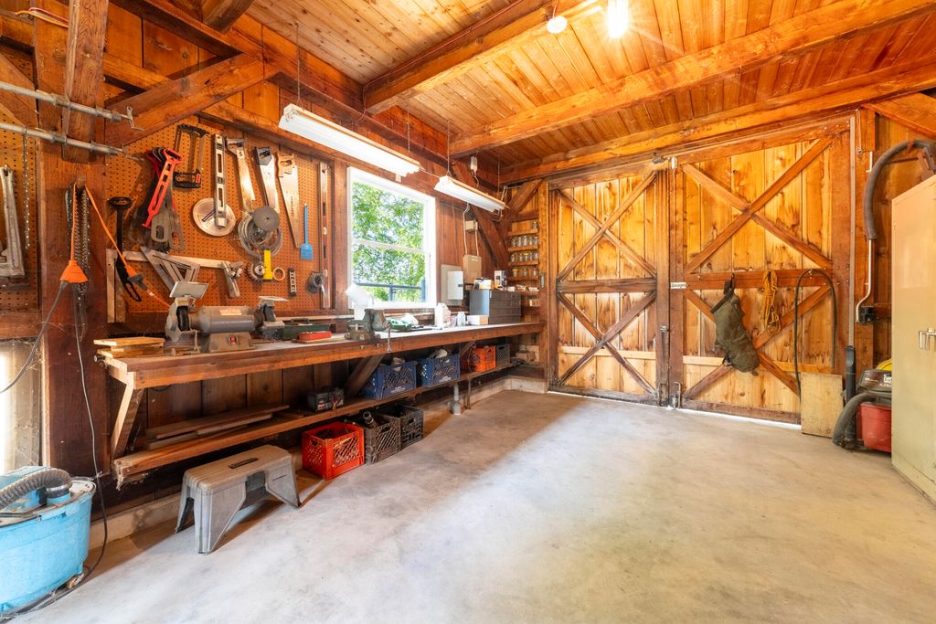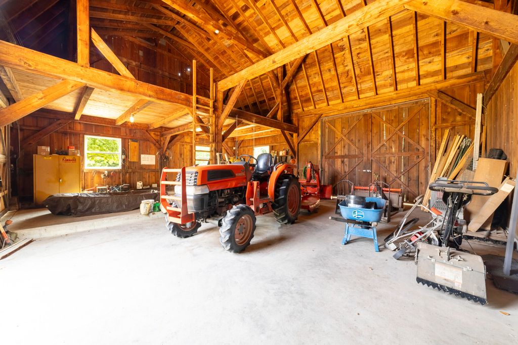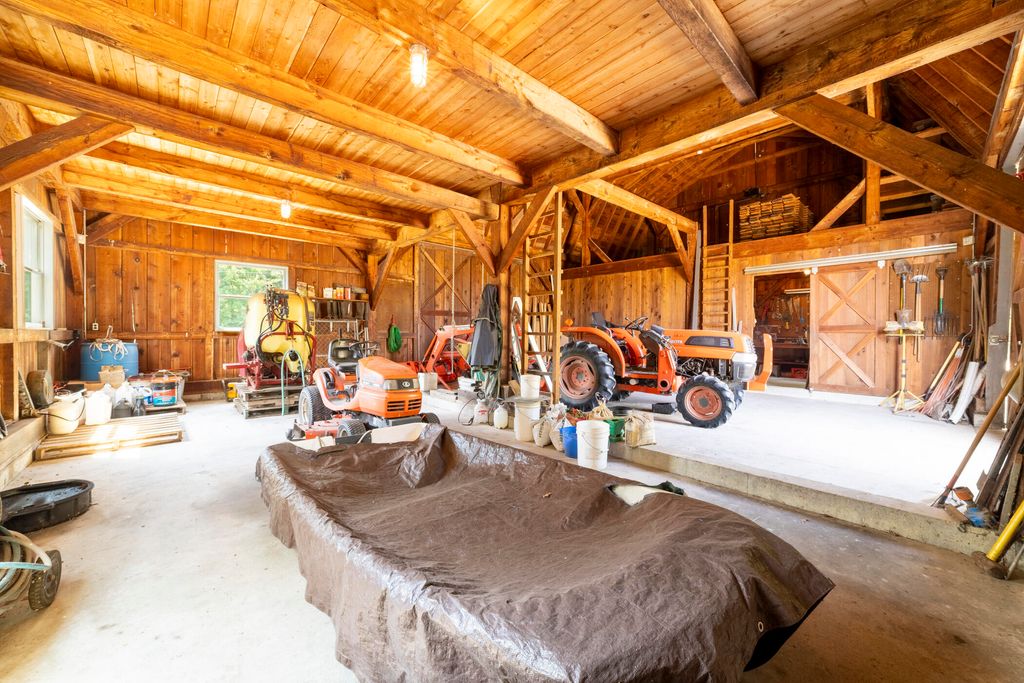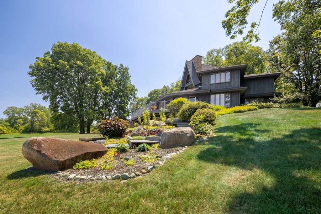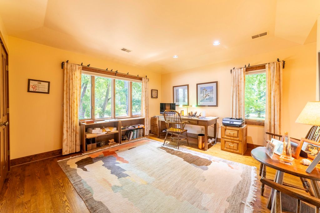 Welcome to a perfectly private rustic retreat set on 97 serene acres in the coveted corridor of Galena Township. This remarkable estate offers five spacious bedrooms and four bathrooms, blending timeless style, modern comfort, and the beauty of its natural surroundings. The moment you enter, you are met with a soaring cathedral ceiling and a striking wooden staircase that sets the tone for the home's inviting warmth. The open-concept kitchen, dining, and living areas feature tongue-and-groove vaulted ceilings and a dramatic floor-to-ceiling stone fireplace, while a wall of French doors floods the space with natural light and leads to a sunroom and wraparound deck. From here, enjoy the sweeping views of a tranquil pond and lush tree farm creating an atmosphere perfect for both everyday living and unforgettable gatherings. The gourmet kitchen is a chef's dream, with shaker cabinetry, granite countertops, generous island, and a dedicated coffee bar. Beautiful hardwood floors flow throughout, enhancing the home's sense of cohesion. The main level also offers a convenient laundry room, while additional living spaces include a billiards room and a cozy sitting area with custom bookshelves. The walkout basement is a showstopper in its own right, anchored by another floor-to-ceiling fireplace and framed by French doors and expansive windows that bring the outdoors in. Beyond the home, a classic timber-and-peg barn stands ready for its next chapter--whether as a guesthouse, event venue, workshop, or studio. The property, meticulously maintained and irrigated, could easily return to a working farm. Mature trees, scenic walking trails, and a peaceful pond with a dock offer endless opportunities for outdoor recreation and quiet reflection. Combining rustic charm with modern amenities and boundless potential, this is more than just a property, it is a place where memories are made, nature is cherished, and the possibilities are as vast as the land itself.