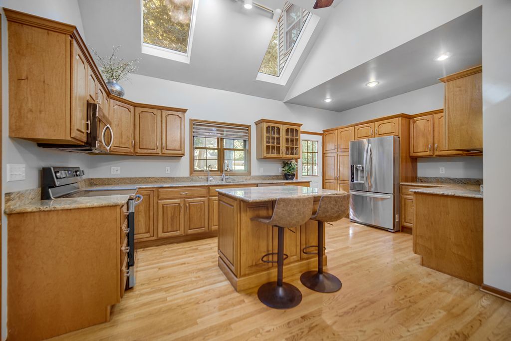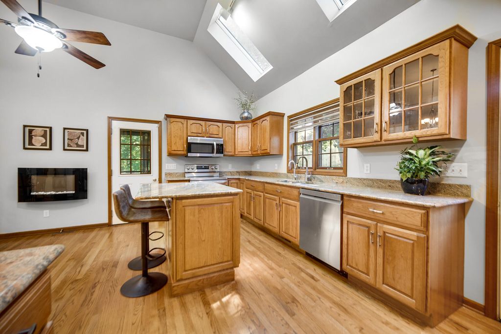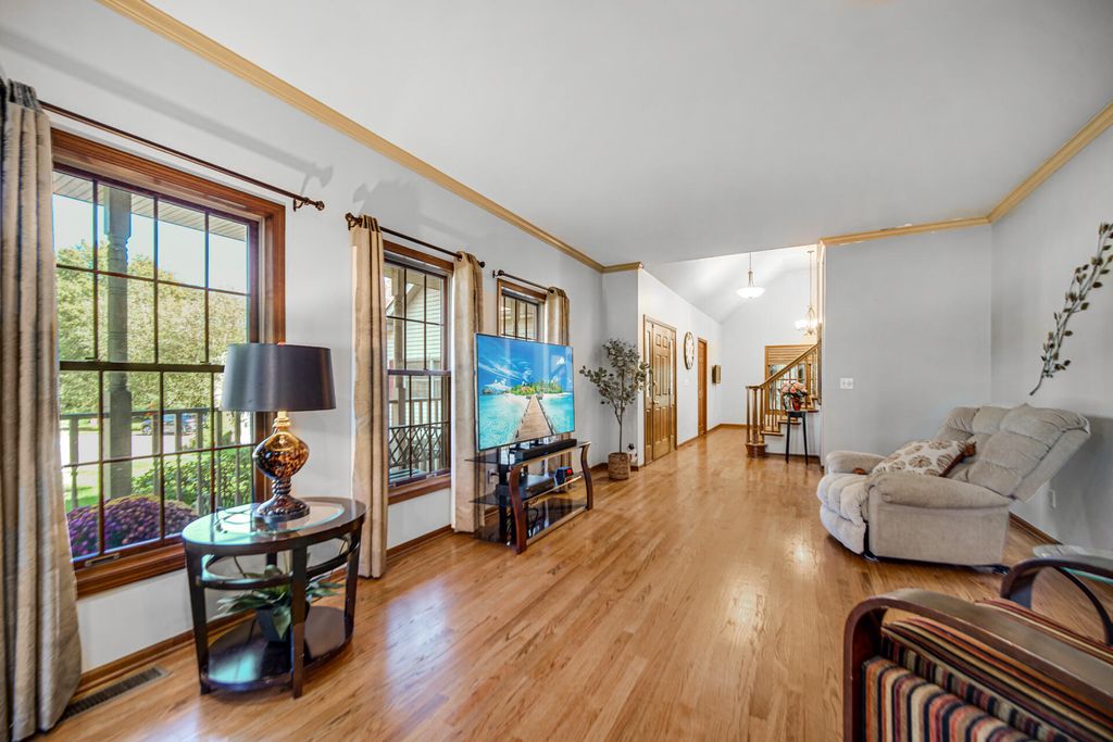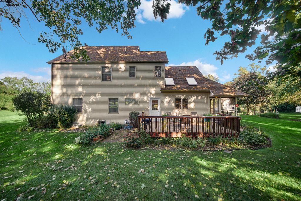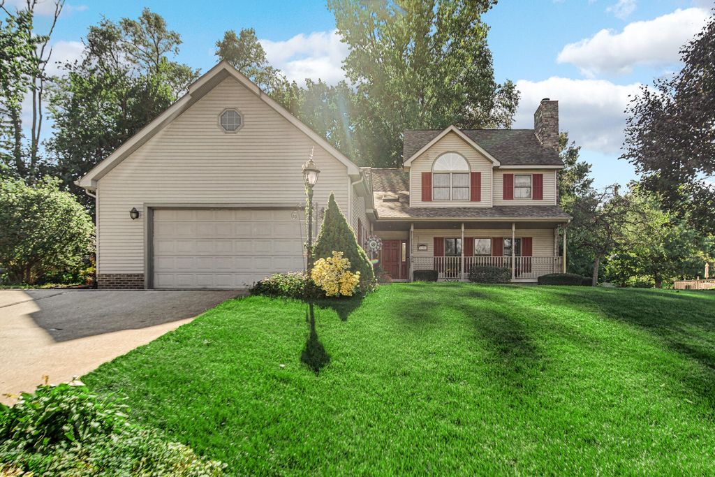 Introducing a beautiful two-story home perched on a hill in the desirable award winning Crichfield school district--just in time for the holidays! This lovingly maintained one-owner property features 3 bedrooms, 3.5 baths, and a stunning two-story stone chimney that adds instant curb appeal. Inside, hardwood floors lead to a bright living room with generous windows and a cozy gas log fireplace--perfect for winter nights. The spacious eat-in kitchen offers granite countertops, abundant cabinetry, and new appliances (excluding refrigerator), making holiday cooking a breeze. Off the kitchen, enjoy a charming screened-in porch for crisp morning coffee or step to a backyard retreat complete with an irrigation system. The main floor includes a generous primary suite with an en-suite bath and walk-in closet. Upstairs, two large kids bedrooms and a full bath are ideal for guests. The finished basement offers a warm family room with a wood-burning fireplace and another full bath--great for movie nights and gatherings. Set on just over half an acre in a quiet cul-de-sac, this home offers room to play, decorate, and celebrate. The oversized 2.5-car garage flows into a practical mudroom/laundry area with a half bath and included washer/dryer. Major updates include a brand-new water heater, 5-year-old furnace, 5-year-old roof, and fresh paint on the main level. A true holiday gift--schedule your showing today!