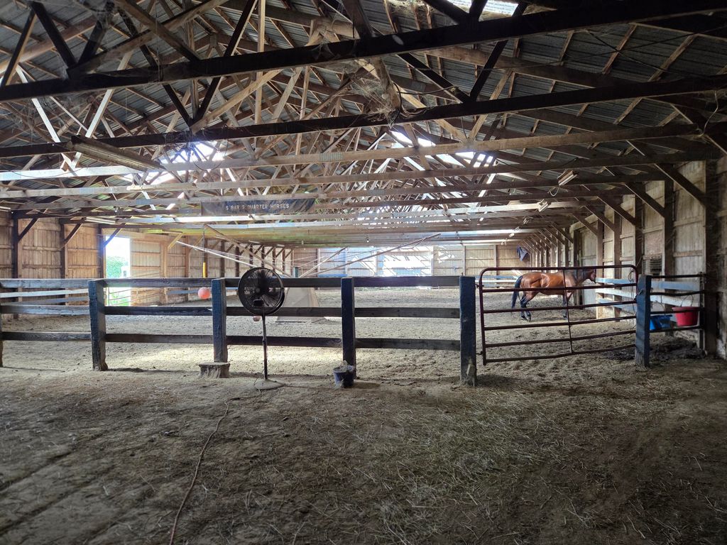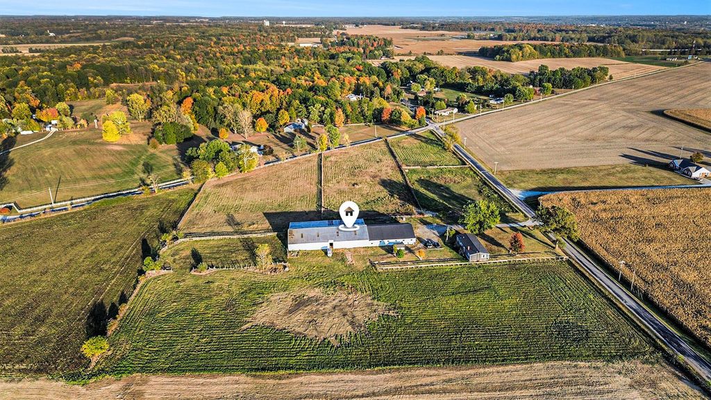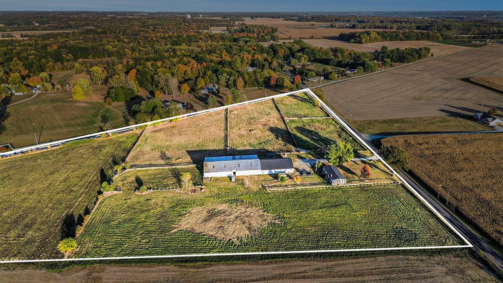 Own your own HORSE FARM! This beautiful 16-ACRE property features a massive 10,000+ square foot POLE BARN, complete with INDOOR ARENAa"perfect for training and competitions, 23 HORSE STALLS, and HAYLOFT. The barn is fully equipped with electricity, water and lean-to area ensuring both comfort and convenience for your equine friends. This corner property boasts FOUR lush PASTURES, providing ample space for grazing or income producing opportunities. It is also easily ACCESSIBLE to main highways for easy commuting. The home on the property is an 1809 sf RANCH. The OPEN-CONCEPT design showcases VAULTED ceilings with beams and LVP flooring, creating an cohesive layout. The kitchen is a chef's delight, featuring STAINLESS STEEL appliances, GRANITE countertops, slow-close cabinets, and a WALK-IN PANTRY, perfect for keeping the kitchen organized. Retreat to the two spacious bedrooms and bathrooms. Both have been updated and are located on each end of the home with open concept living in the center. The entire interior and exterior of the home underwent a COMPLETE RENOVATION in 2016. In addition, a new AC unit was recently installed. The primary bedroom and bathroom were updated with new carpet, LVP flooring, paint, vanity and toilet in 2025. Don't miss this incredible opportunity to own a horse farm that is move-in ready! Schedule your private tour today!