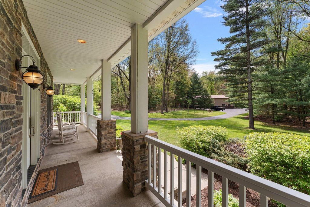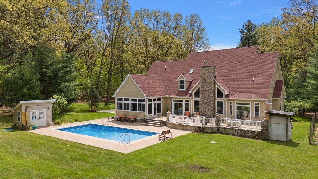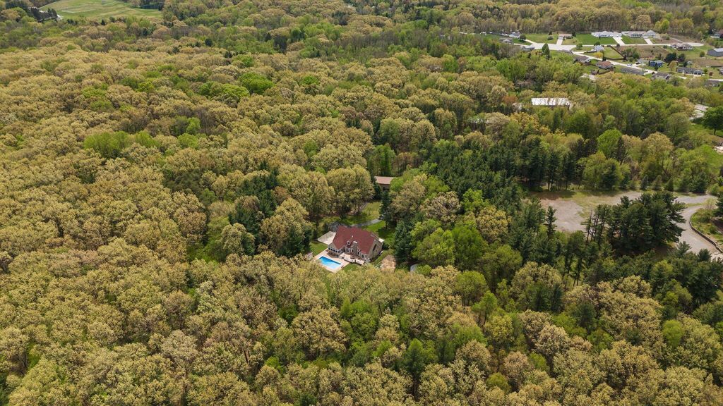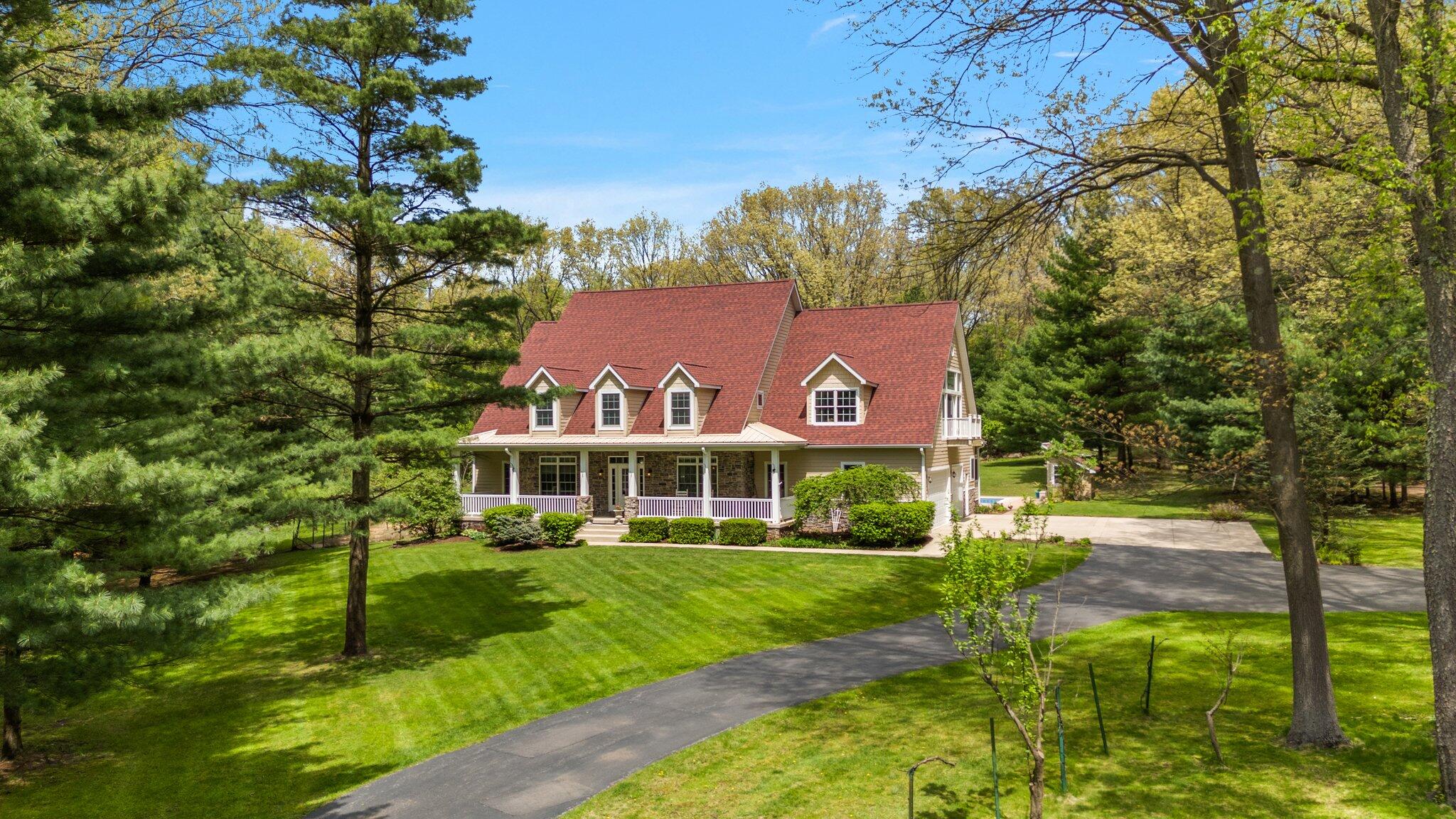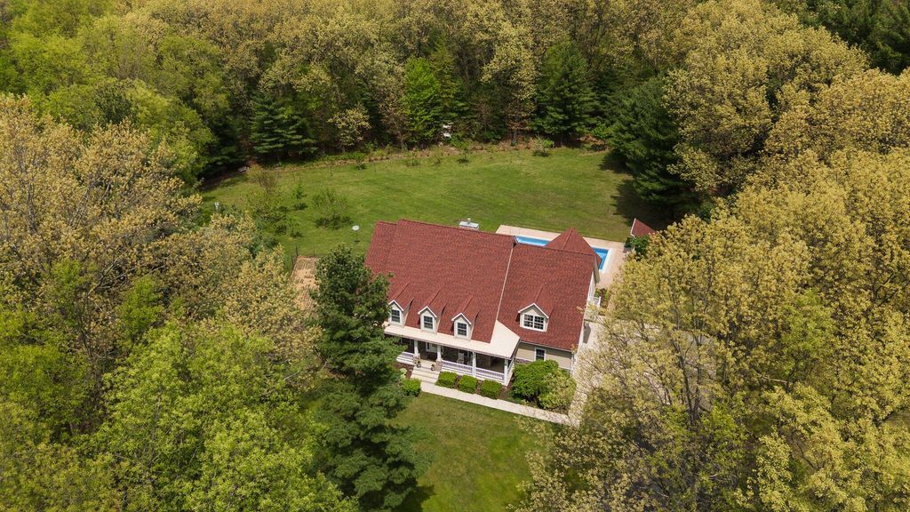 Discover this one-of-a-kind home, nestled on a 16-acre wooded estate in La Porte! A private, tree-lined driveway leads to this serene retreat, surrounded by beautifully landscaped grounds and natural beauty. Step inside to soaring ceilings, expansive windows, and thoughtfully selected finishes that fill each room with light and character. But the charm of this property doesn't stop there - it extends into the many unique features that make it truly special. Notable features include: a heated in-ground pool surrounded by nature; a wraparound front porch; a backyard patio with a built-in gas grill and wood-burning oven; a massive pole barn with heating and cooling; trails, open lawn areas, and wooded surroundings ideal for outdoor activities; a heated greenhouse for year-round gardening and sustainability; a diverse array of plants, fruit trees, vegetables, and colorful blooms; a 3.5-car garage with direct access to the basement; a main-floor primary owner's suite with direct access to the patio; three spacious bedrooms upstairs; a full basement complete with a kitchenette; a basement bonus room (potential 5th bedroom); a reinforced basement safe room; a studio loft with tall ceilings, its own private bath, balcony, and climate control; a sunroom with vaulted ceilings; a dedicated home office - and so much more. Conveniently located near restaurants, shopping, major roadways, and 5 minutes from Pine Lake. Whether you're seeking a peaceful retreat, space to grow and create, or the ultimate entertaining haven, this extraordinary property delivers!