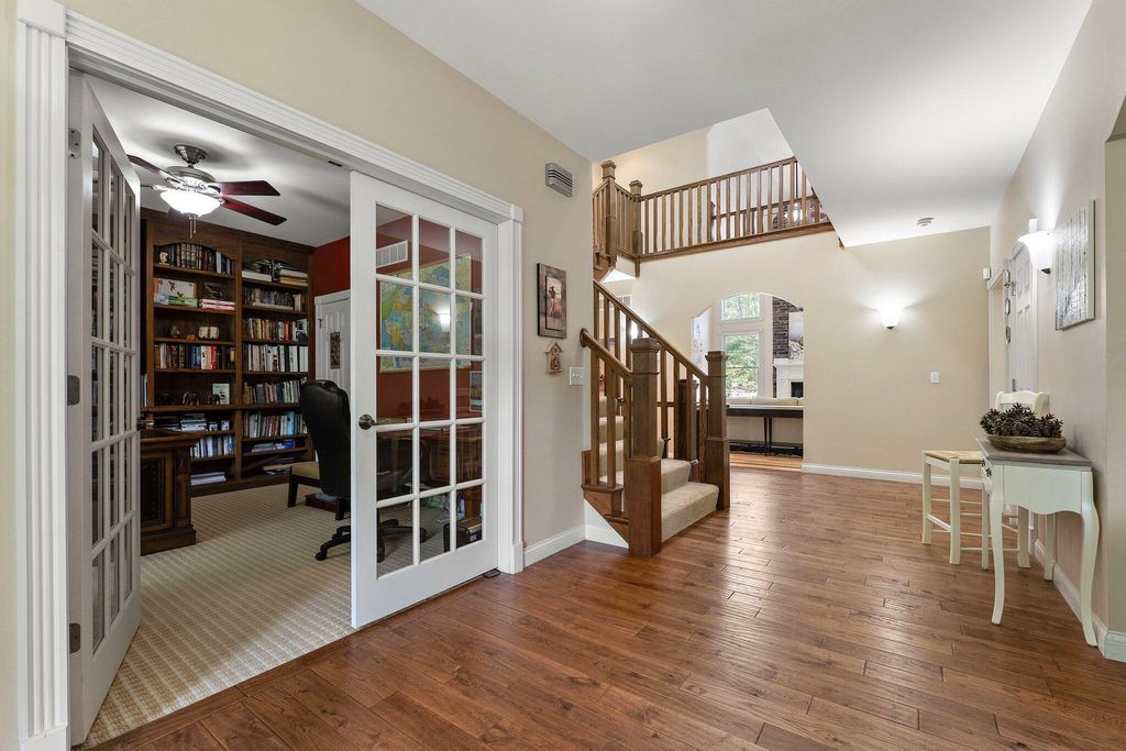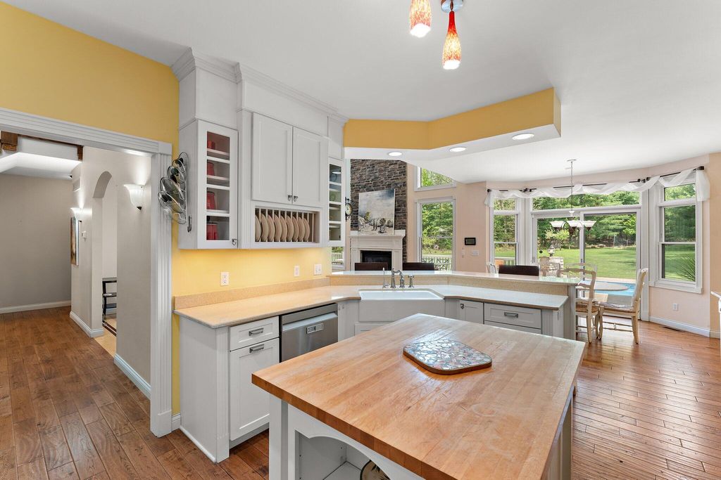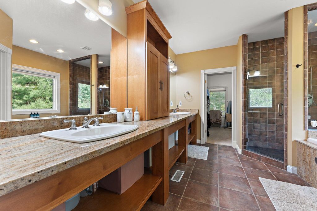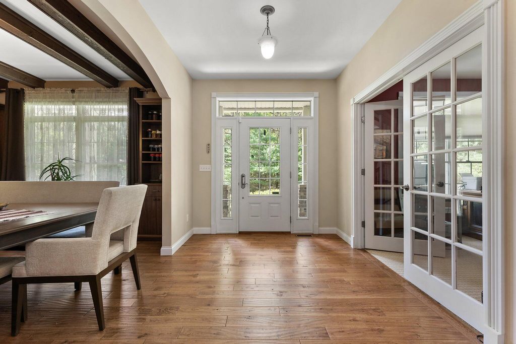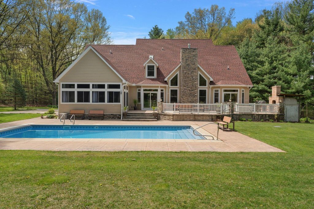 Discover this one-of-a-kind home, nestled on a 16-acre wooded estate in La Porte! A private, tree-lined driveway leads to this serene retreat, surrounded by beautifully landscaped grounds and natural beauty. Step inside to soaring ceilings, expansive windows, and thoughtfully selected finishes that fill each room with light and character. But the charm of this property doesn't stop there - it extends into the many unique features that make it truly special. Notable features include: a heated in-ground pool surrounded by nature; a wraparound front porch; a backyard patio with a built-in gas grill and wood-burning oven; a massive pole barn with heating and cooling; trails, open lawn areas, and wooded surroundings ideal for outdoor activities; a heated greenhouse for year-round gardening and sustainability; a diverse array of plants, fruit trees, vegetables, and colorful blooms; a 3.5-car garage with direct access to the basement; a main-floor primary owner's suite with direct access to the patio; three spacious bedrooms upstairs; a full basement complete with a kitchenette; a basement bonus room (potential 5th bedroom); a reinforced basement safe room; a studio loft with tall ceilings, its own private bath, balcony, and climate control; a sunroom with vaulted ceilings; a dedicated home office - and so much more. Conveniently located near restaurants, shopping, major roadways, and 5 minutes from Pine Lake. Whether you're seeking a peaceful retreat, space to grow and create, or the ultimate entertaining haven, this extraordinary property delivers!