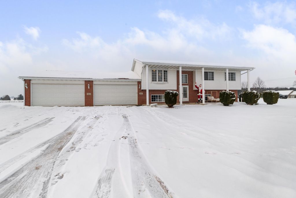 Discover country living at its finesst in this great one-owner home with over 2400 finished sq. ft of living space, featuring 5 bedrooms, 2 full baths and 4+ car garage, all located in a private rural setting on 1.51 acres! Enjoy your morning cup of coffee on the covered front porch. Enter, and the spacious foyer provides great views of both the upper and lower levels. The Upper level features cathedral ceilings with open-concept living, dining and kitchen areas. Spacious living area features beautiful bay window - dining area overlooks rear yard with access to HUGE back deck, spacious kitchen provides plenty of cabinets and counterspace, breakfast bar with undermount sink, newer light fixtures & more! Television and electric fireplace on the upper foyer wall are also included! Completing the spacious upper level area are 3 spacious bedrooms and large bath - primary bedroom allows private access to main floor bath. The lower level features 9 ft. ceilings with 2 additional bedrooms, HUGE recreational area (slate pool table is included), full bath w/jacuzzi tub and separate shower, and a laundry area. Access to the 4+ car garage with 8 ft. garage doors, too! Outside enjoy a partially fenced rear yard, HUGE deck, firepit, and for additional storage an additional 1 car (24x12 garage) and covered shed area! Did I mention the hot tub is included, too! All this PLUS HEE furnace, 50 gal HWH, newer carpet, newer light fixtures and so much more! This home is absolutely impeccable, light and bright throughout, andready for it's new owners!