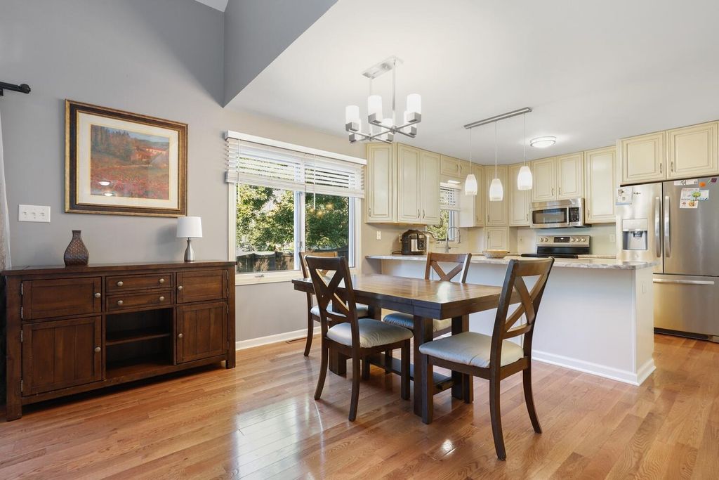 Welcome to this spacious corner unit townhouse with a main level primary suite, newly remodeled kitchen and private fenced yard! Step inside to a warm and inviting entry that opens to a bright living space featuring vaulted ceilings and beautiful new hardwood floors. The living room offers easy access to the back patio, perfect for relaxing or entertaining. Enjoy meals in the adjacent dining area, just steps from the chef's kitchen, which features brand new granite countertops, tiled backsplash, stainless steel appliances, and a large breakfast bar ideal for food prep or casual dining. At the end of the day, unwind in the stair-free primary suite with direct access to the remodeled full bath. A convenient laundry room completes the main level. Upstairs, you will find three generously sized bedrooms and another full bath with dual sinks, offering plenty of space for family or guests. Outside, enjoy the new fence and private yard from your patio, a great space for outdoor living. The attached two-car garage provides plenty of room for parking and storage. This home is ideally situated near shopping, dining, schools, parks, and more. Schedule your showing today!