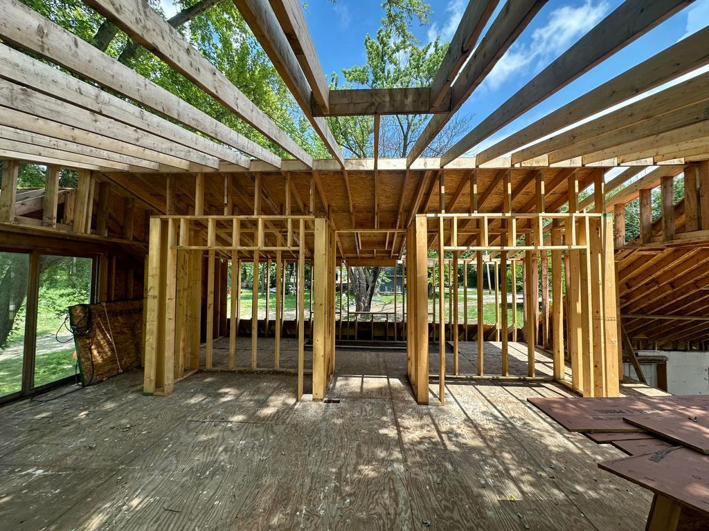 Endless potential at Hudson Lake! Located within walking distance to the South Shore Train Station, Hudson Lake, and the popular Hudson Lake Tavern, this property includes five spacious lots totaling nearly 40,000 sq ft. With approximately 2,609 sq ft of living space, the home is gutted and ready to be finished, offering an open canvas for your vision. The proposed floorplan features an open-concept layout, two large bedrooms, a spacious primary bath, and a huge owner's suite upstairs with his & hers closets and a private bath. Recent improvements include new LVL and steel support columns, framed shed dormers, framed windows on the upper level, repaired floor joists, and septic tank repairs (pump still needed). Land has been cleared and offers ample space to spread out and perhaps add a pole barn and fence. With potential as a primary residence, workshop, short-term rental, or Airbnb, this home offers flexibility to match your vision. Centrally located between University of Notre Dame, South Bend, Lake Michigan, and Chicago, and just minutes from downtown charming New Carlisle, this is a prime location with endless upside. Schedule your showing before this great investment property is gone!